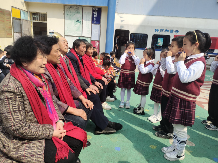 当天下午,正碰上互动活动。老人和孩子面对面坐着敲打非洲鼓。音乐声中,他们随着节拍不停挥动手臂敲击鼓面,现场一片欢声笑语。“我们会定期举办这样的互动活动,在重阳节、中秋节等节日还会组织老人和孩子一起表演。”钟声亲亲宝贝园负责人告诉笔者。