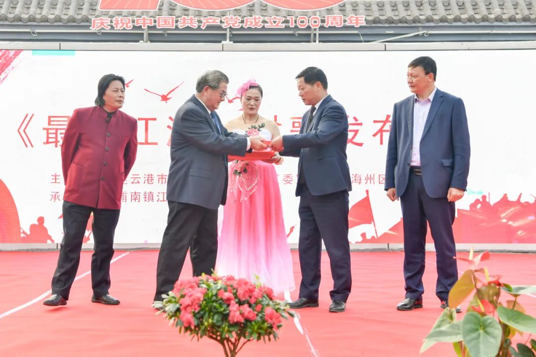 发布会上,连云港市文联副主席李敬伟赠送歌词书法作品。海州区诗词协会副会长朱成安介绍了歌词创作理念。中国音乐家协会会员、国家二级作曲家董自伦发表了村歌的创作感言。词、曲作者向村委会赠送了《最美江浦》MV光盘。江浦村党委书记李罗华就《最美江浦》MV视频的面世致辞,感谢市、区文联和文艺家的辛勤付出。