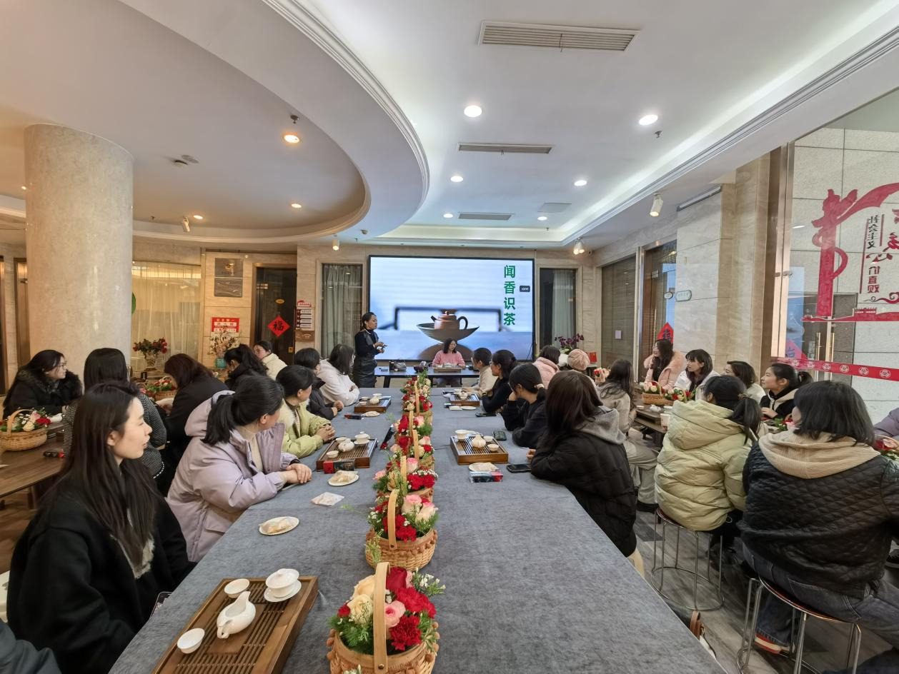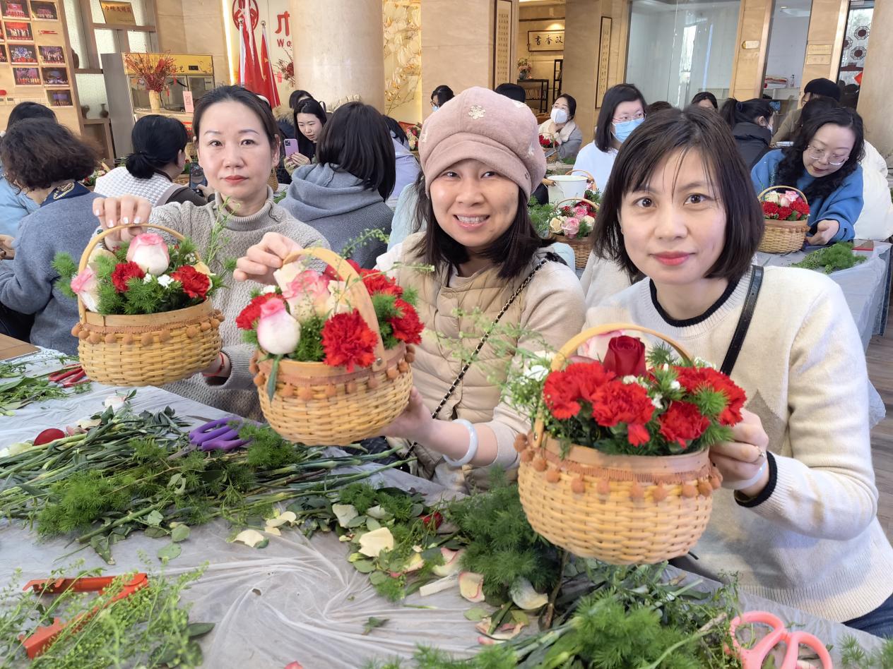 第一项花艺插花活动,现场花香四溢,热闹非凡,女职工们一边聆听花艺讲师的讲解一边热情投入插花工作,在插花过程中不断与伙伴们交流探讨,用心制作心仪的花篮。通过大家的精心制作,一份份精致的花篮逐渐成型,看着自己的作品,大家充满成就感。插花活动后紧接着开展了第二项茶艺品茗活动,大家共同聆听茶艺知识,体会茶文化的丰富内涵,一起举杯学茶艺、低头品香茗,在茶韵茶香中大家观茶艺、赏茶道、学茶礼,现场暖意融融、茶香四溢。