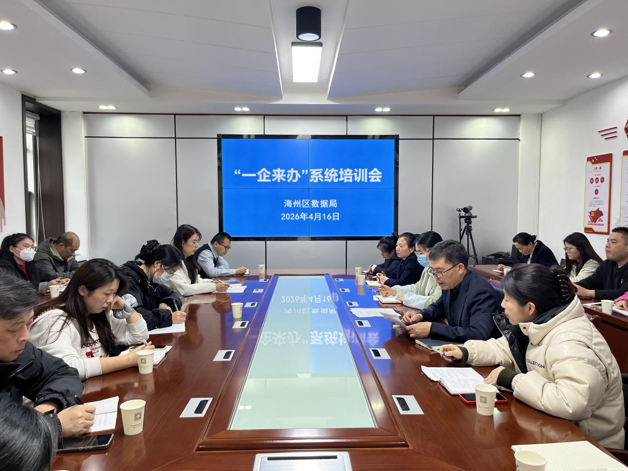4月16日,海州区数据局组织召开“一企来办”系统专题培训会,20余名部门负责人及业务骨干参加培训。