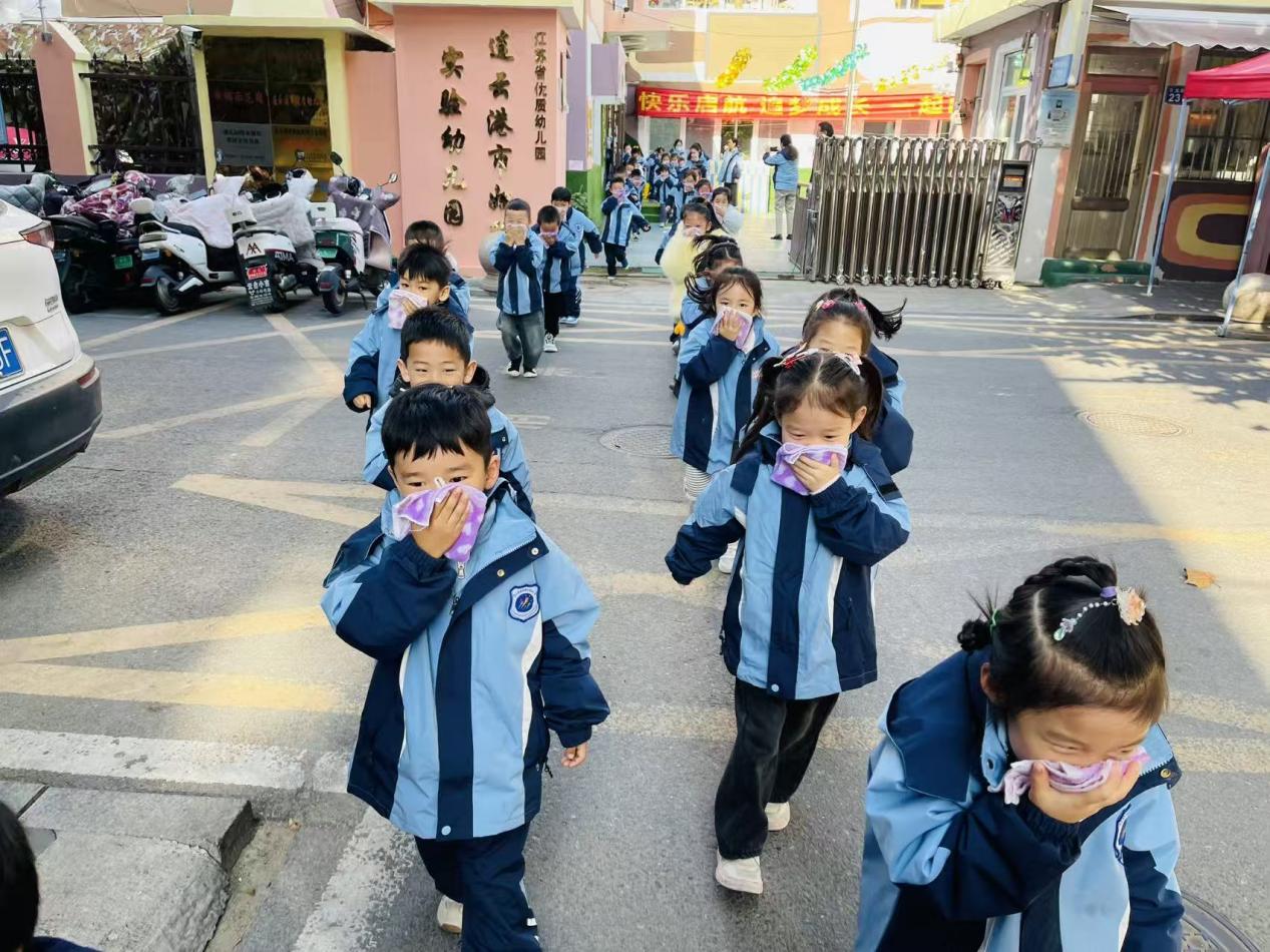 巨龙社区则与连云港市育才幼儿园以“安全‘童’行,筑牢防线”为主题组织疏散演练。随着警报声响起,幼儿在教师引导下,熟练掌握“湿毛巾捂口鼻、弯腰低姿前行”的逃生要领,沿预定路线快速有序撤离至安全区域,各班清点人数后及时汇报,全程紧张有序、无推挤遗漏。
