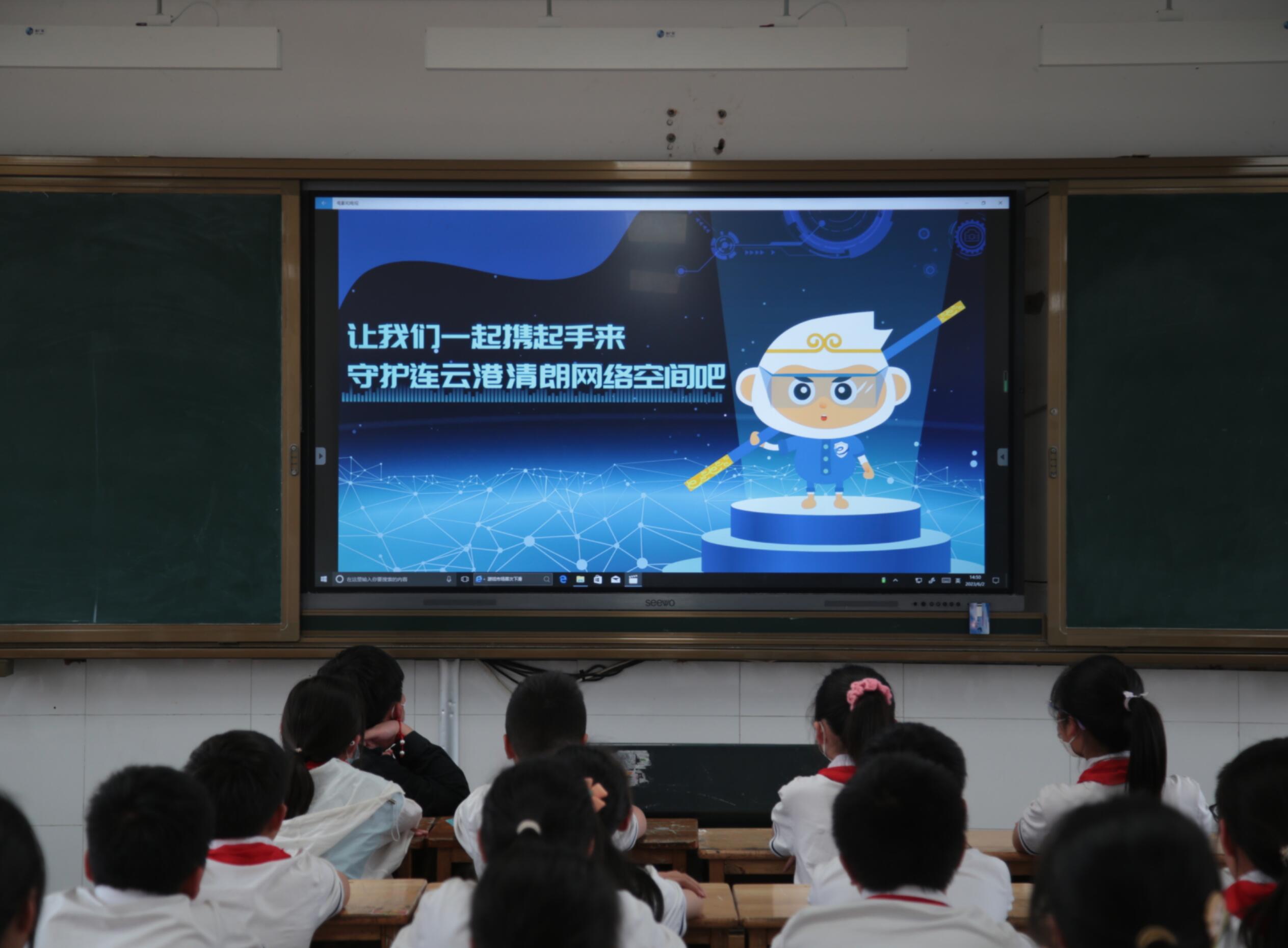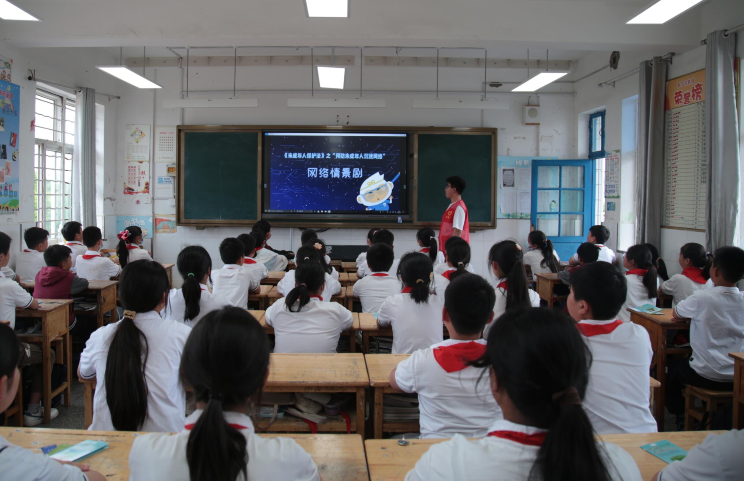 课堂上,发放了“护苗绿书签”及网络宣传画册,同时观看了《未成年人保护法》之“预防未成年人沉迷网络”网络情景剧,为学生们解读如何预防网络侵害、远离网络犯罪。