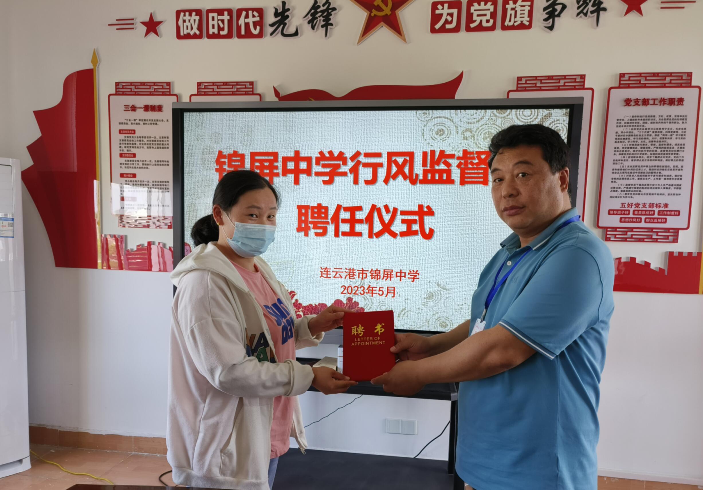 为推进校园党风廉政建设,营造教师廉洁、校风清朗的良好育人环境,加强教育行风建设,规范学校办学行为,5月31日上午,连云港市锦屏中学举行行风监督员聘任仪式暨座谈会。