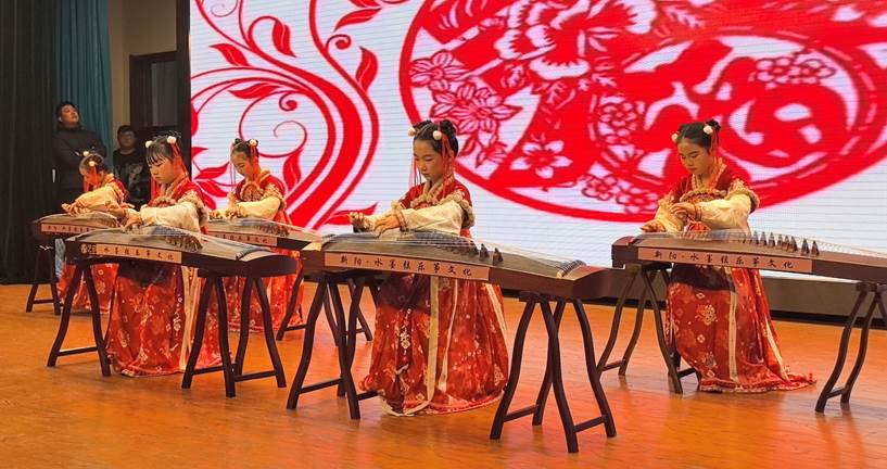 这场“家门口”的村晚精彩纷呈,以多元节目传递新春喜悦、彰显社区烟火温情,让居民沉浸式感受年味儿与文化魅力。舞台上,活力舞蹈搭配喜庆财神人偶瞬间点燃全场,赢得阵阵掌声;身着传统服饰的孩子们端坐台前,指尖流转间,古筝悠扬古韵奏响新春乐章,尽显中华传统文化韵味与生机;女声独唱深情婉转,诗朗诵铿锵有力,传递出居民对新年的美好憧憬。