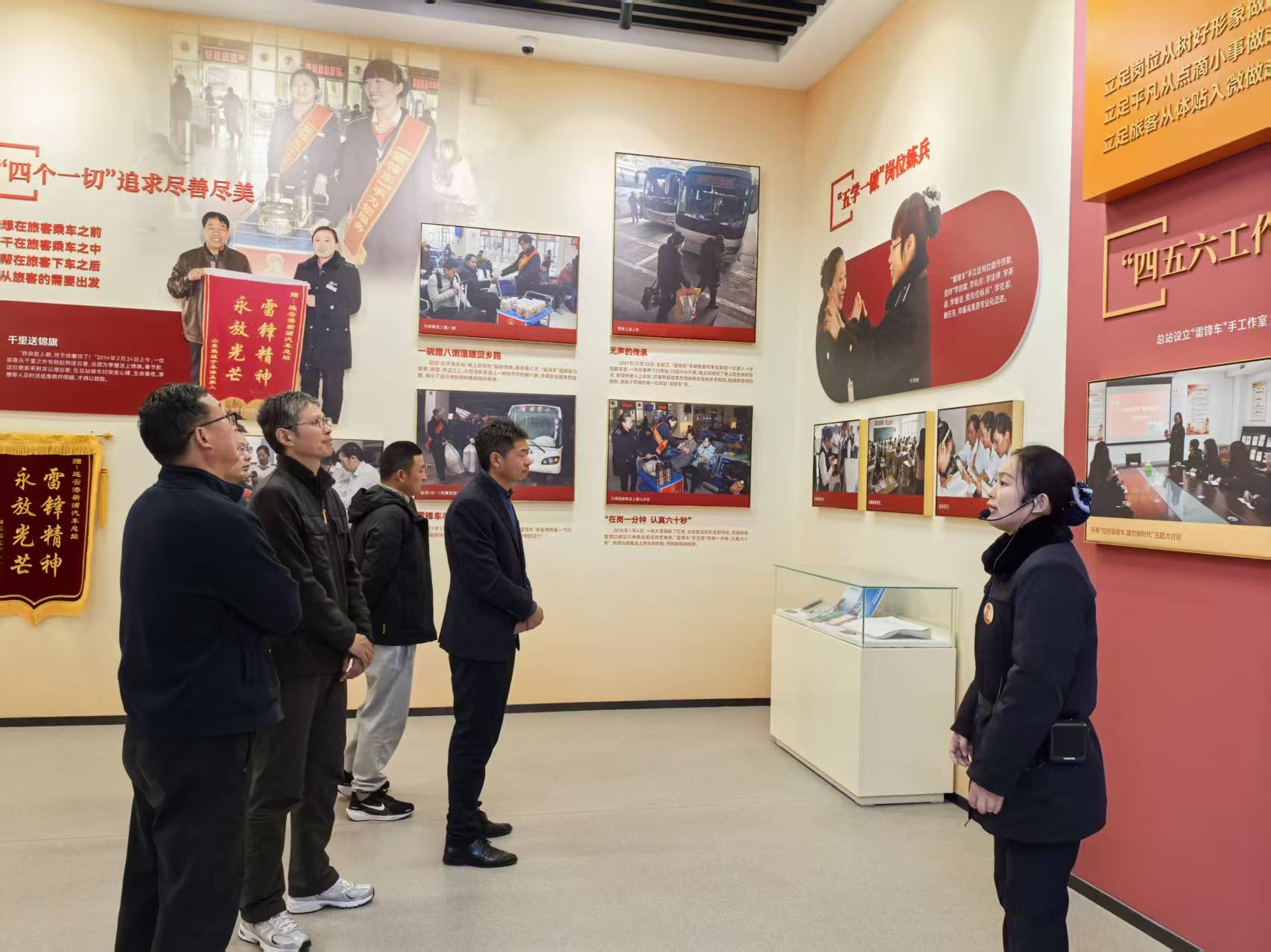 在陈列馆内,党员干部们在讲解员的引导下,认真聆听“雷锋车”组61年如一日坚持为民服务的感人事迹。从最初的一根扁担、一辆木板车,到如今绿色环保的电动观光车,“雷锋车”组历经六代传承,500多位车手接力奉献,累计免费运送旅客34万人次,义务运送行包38万余件,用实际行动诠释了“宁愿自己千般苦,不让旅客一时难”的初心与担当。馆内陈列的130余件实物、200余幅照片和珍贵视频资料,全景式展现了雷锋车手们在严寒酷暑中坚守岗位、无私奉献的感人场景。