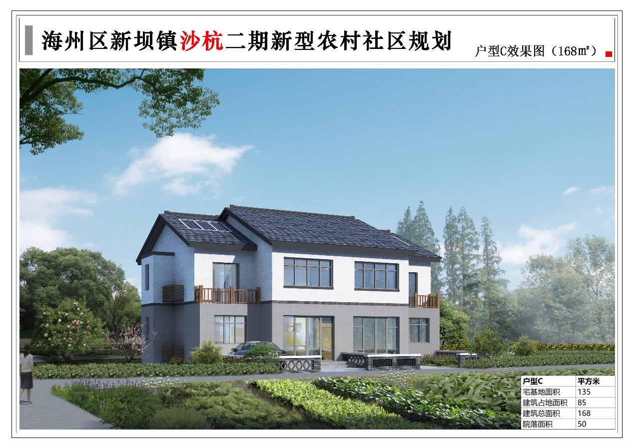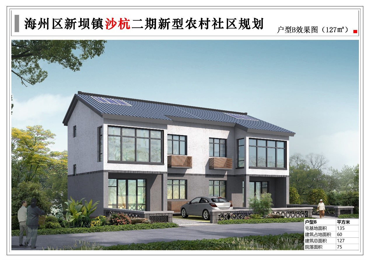 本次新型农村社区建设以低层双拼为主,规划新建户型315户,其中户型A二人居(79㎡)18户、户型B三人居(127㎡)59户、户型C四人居(168㎡)172户、户型D五人居(185㎡)66户;规划公共服务配套建筑面积1800㎡。