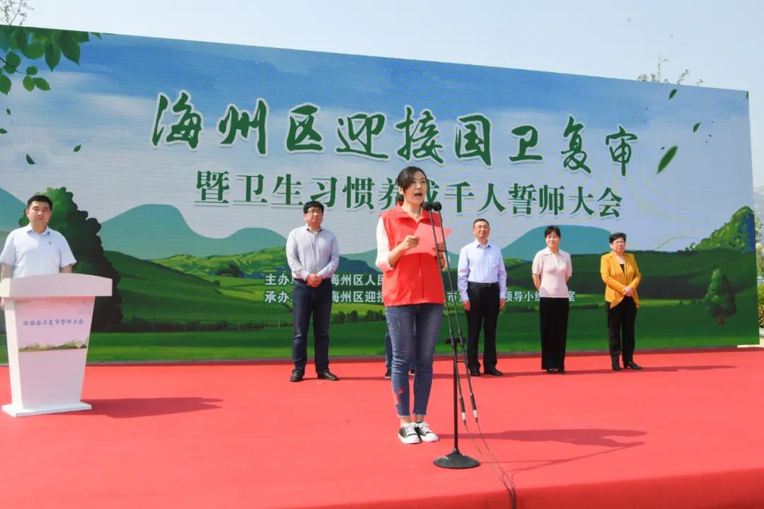今年是连云港市迎接创卫复审的第一年,也是创建全国文明城市的收官之年。5月23日上午,为了迎接国家卫生城市复审工作及进一步深化全国文明城市创建,海州区迎接创卫复审暨卫生习惯养成千人誓师大会在海州体育馆举行,号召全区上下从小事做起,除陋习、讲文明、树新风、展形象,为连云港创卫复审、创建全国文明城市贡献自己的一份力量。市卫健委副主任徐启,区政府副区长于卉,市爱卫办副主任李家富,区政府党组成员、城管局局长林秀兰等参加。